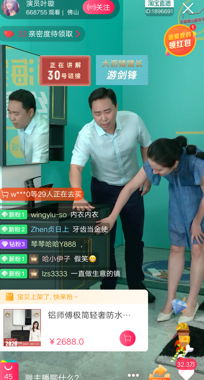 5.23號晚大瀝鎮長和葉璇為鋁師傅全鋁衛浴柜帶貨