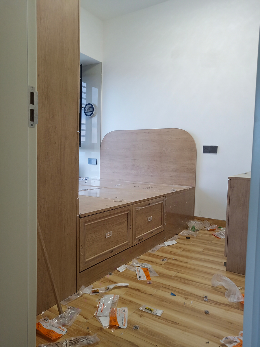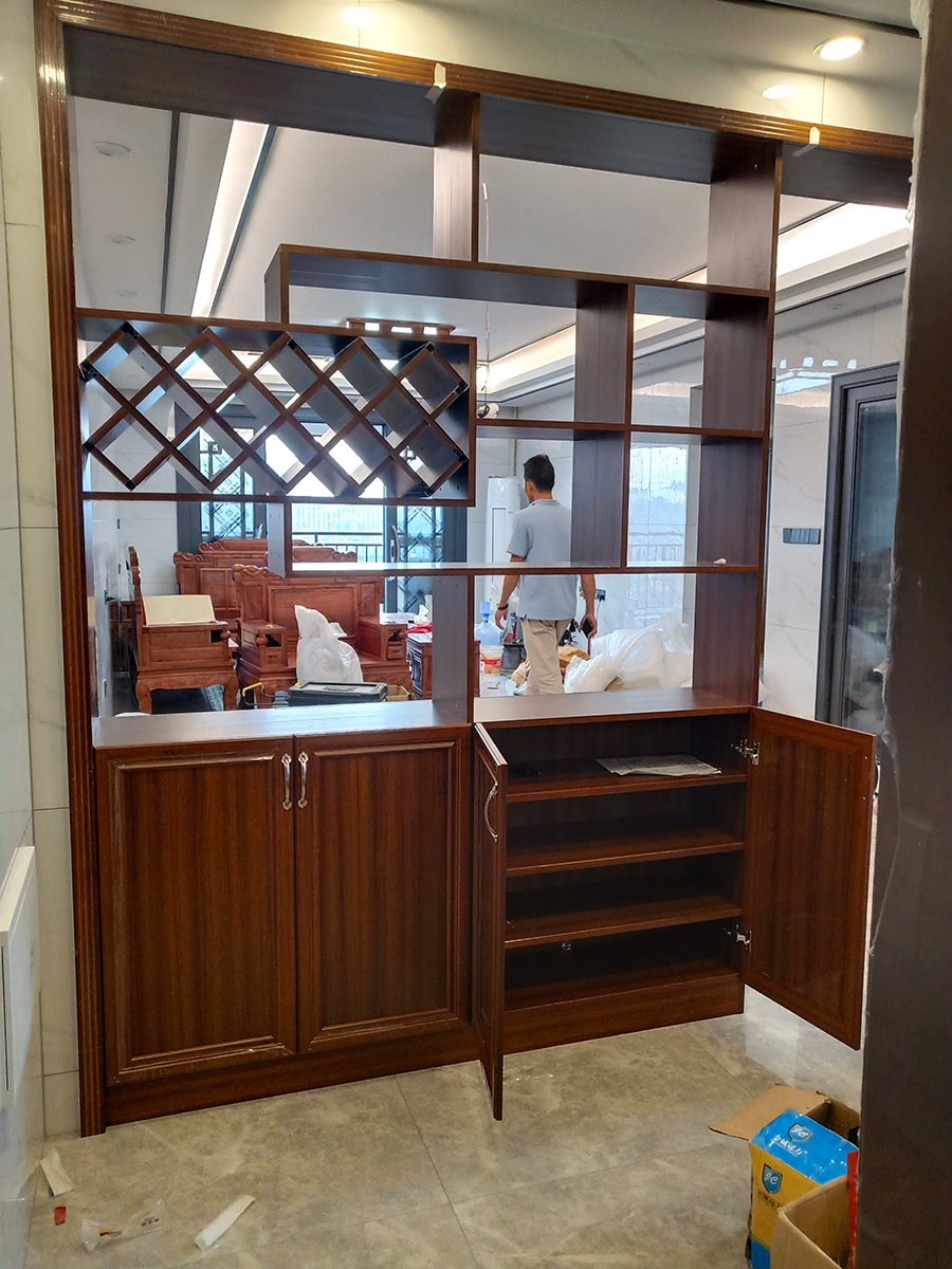 陽江的吳先生是在網(wǎng)上看到我們鋁師傅全鋁家居的,通過咨詢知道陽江有很多客戶都在我們廠定制全鋁家具,還到客戶家看安裝效果,看過之后非常滿意,對(duì)這種有著鋁的內(nèi)涵,木質(zhì)外表的新型材料贊不絕口。第二天就約了我們上門量尺,吳先生的太太喜歡木材原色,所以家具主色選的是北歐榆木,非常接近木材,紋理逼真。我們一起看看安裝效果: