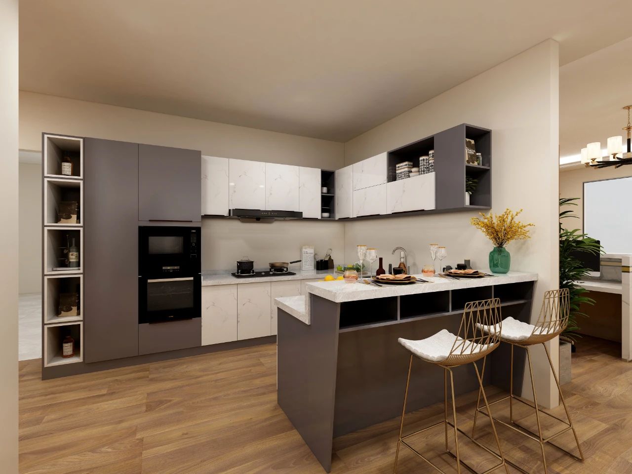 U型全鋁櫥柜在面積較大的戶型里常見,因為有2個拐角,儲物功能大,方便嵌入電器和儲藏餐具,操作臺的空間也大,可以2-3人一起做飯。