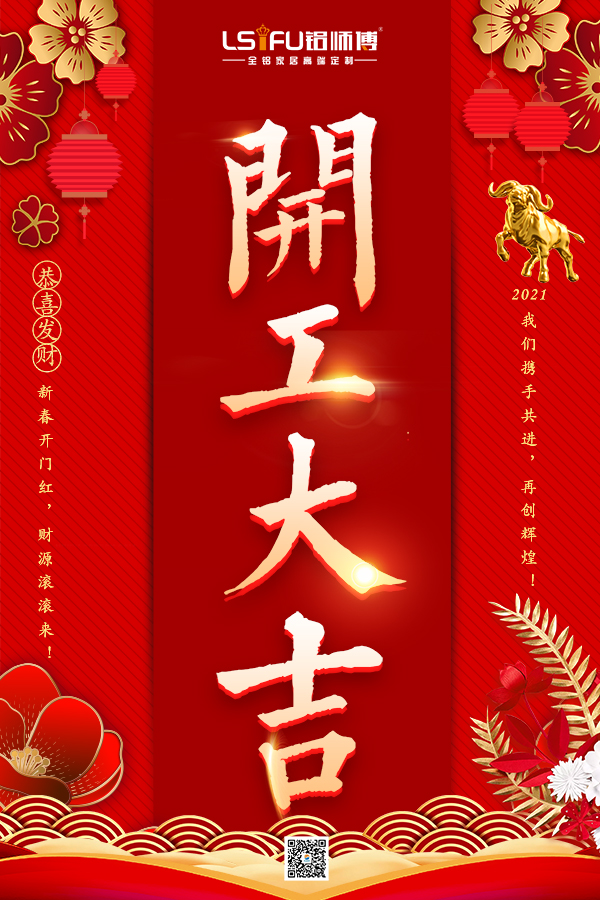啟新章、攜夢想,共未來!歐格美鋁業鋁師傅全鋁家居祝大家在新的一年里工作順利,財源廣進,牛年大發!