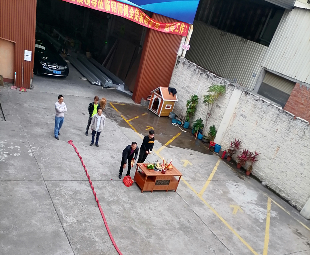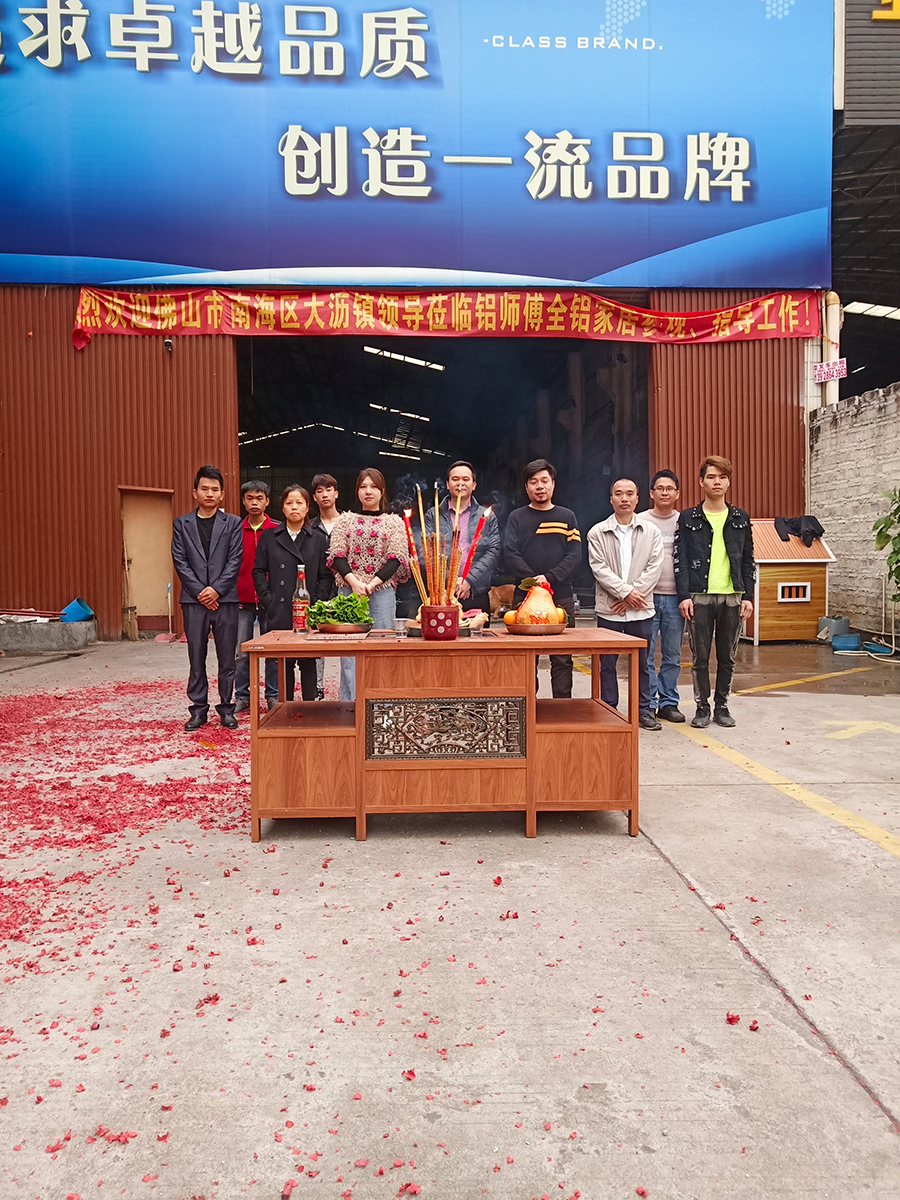 2021年農歷正月十六辰時八點十八分歐格美鋁業、鋁師傅全鋁家居舉行開張開業儀式—拜神、點香、放鞭炮。