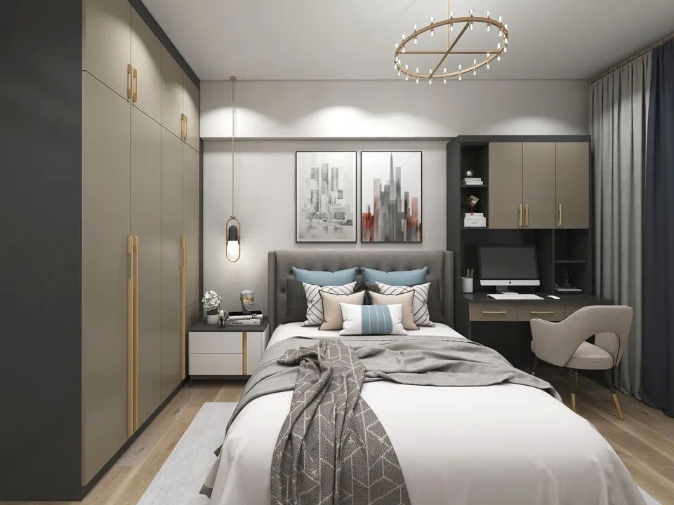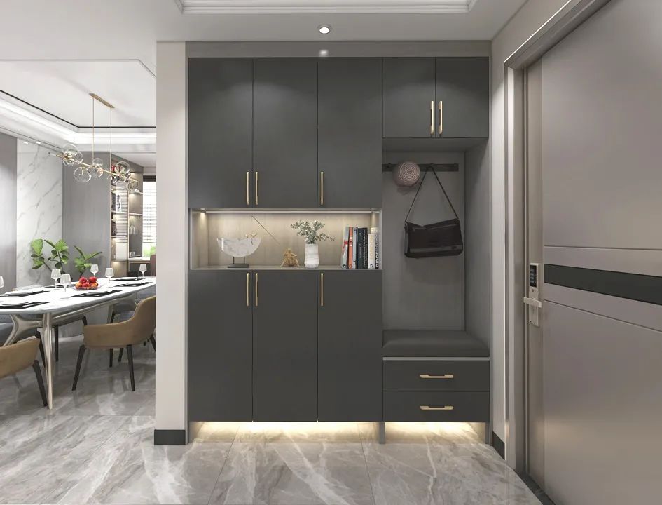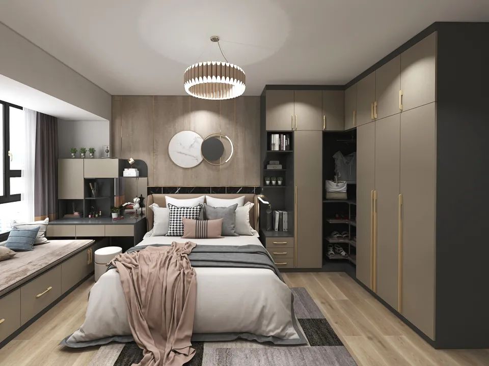 珠光閃銀卡其色衣柜門安裝效果: