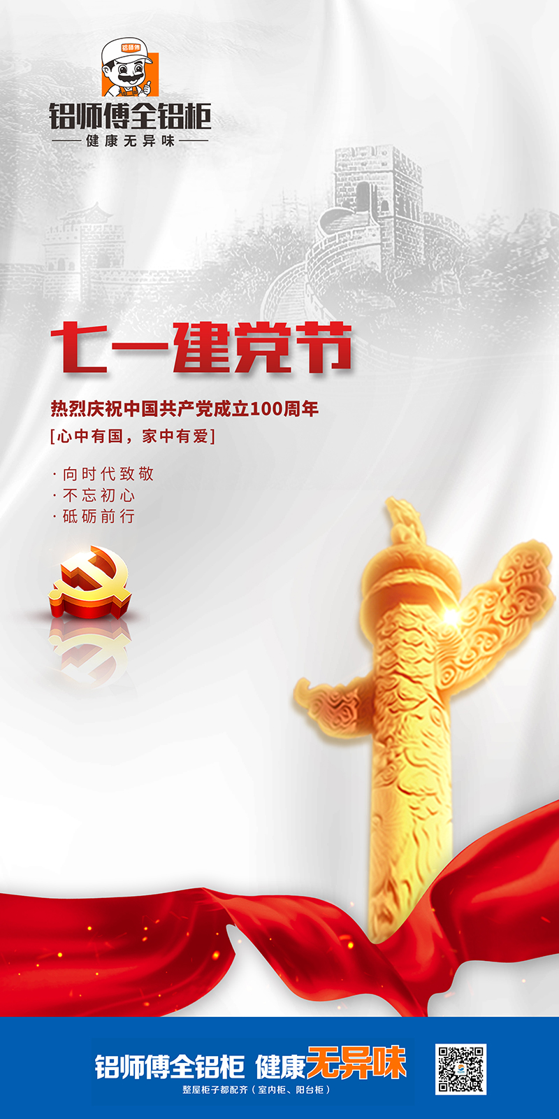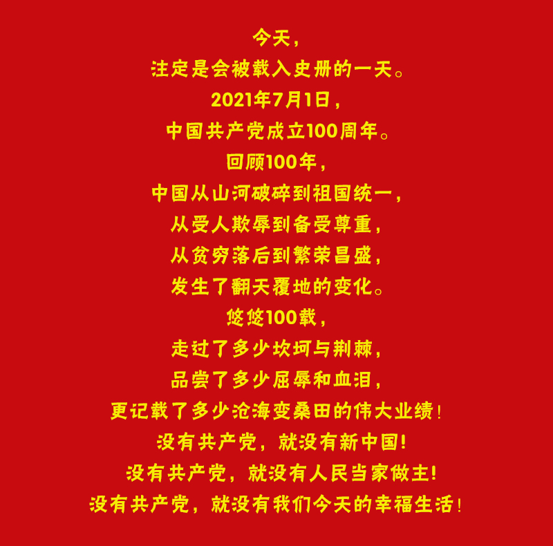 最后,歐格美鋁業、鋁師傅全鋁家居全體同仁祝偉大的中國共產黨: