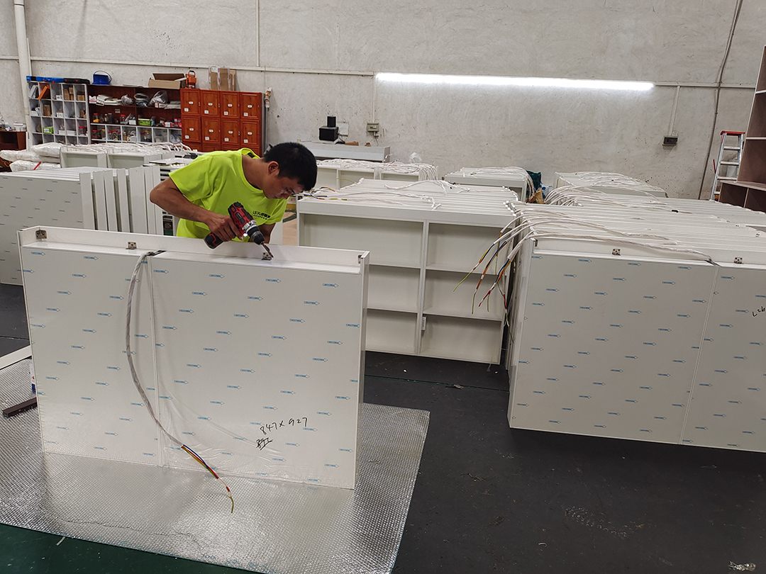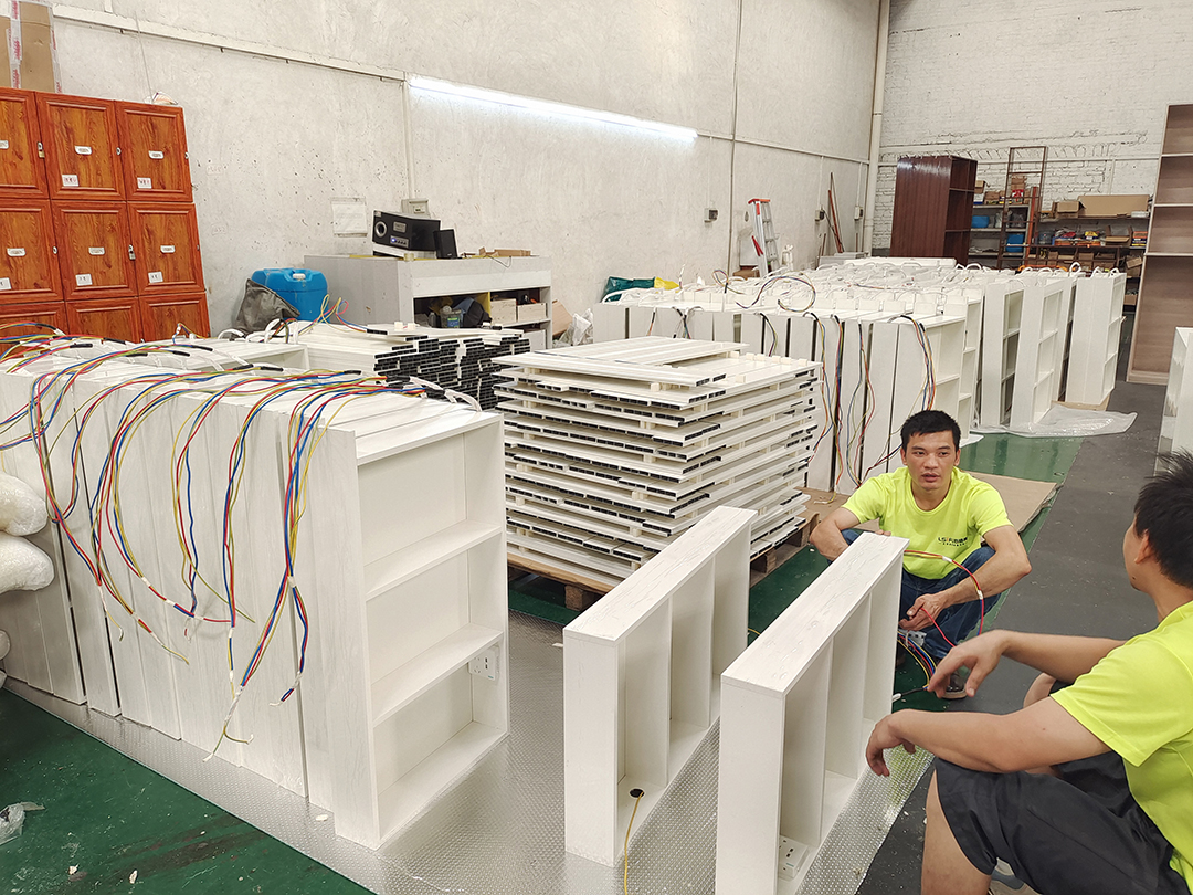 開發(fā)商要求這批浴室鏡柜安裝燈帶和開關(guān)。