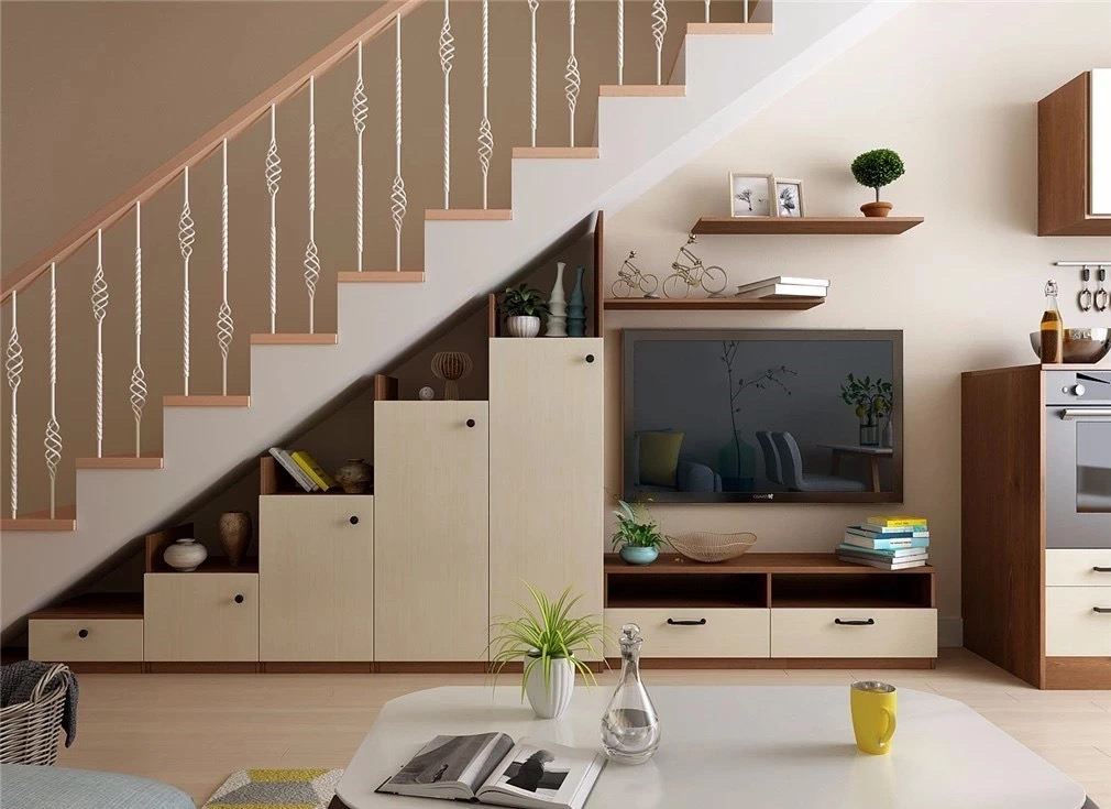 樓梯的空間運(yùn)用的好,可以增加很大的收納空間,且樓梯可以變身為各種功能空間,放日常小雜物、鞋子、小工具呀,都很不錯(cuò),可以說(shuō)是收納小王者了。